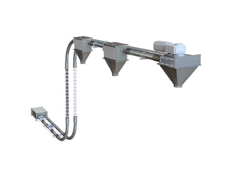 대량 이송에 적합하고, 공간 활용도가 높아 식품, 화학, 시멘트, 플랜트 산업 등 다양한 공정에 널리 사용됩니다.